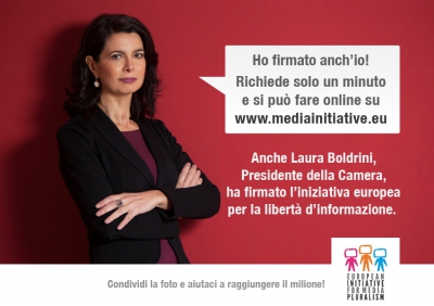 30.03.2013 – La Presidente della Camera, Laura Boldrini, ha aderito all'iniziativa dei cittadini europei per la libertà d’informazione e il pluralismo dei media (EIMP).